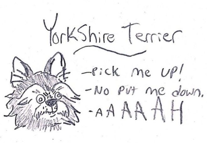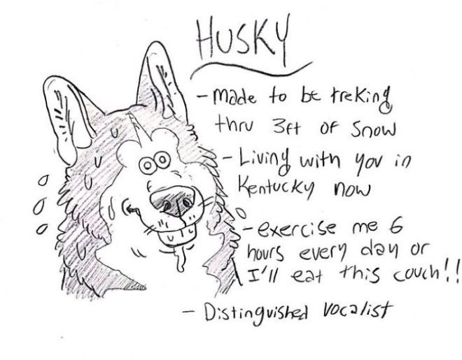 — «Выгуливай меня по шесть часов каждый день, иначе я съем этот диван!!!»;
