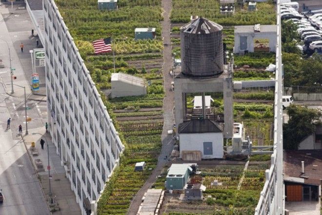 Нью-Йорк является гигантским мегаполисом, потому здесь остро стоит проблема зеленых насаждений и чистоты воздуха. У многих жителей также нет возможности употреблять в пищу органические фрукты и овощи. Городу удалось решить эту проблему очень интересным и эффективным способом. Эта ферма на крыше занимает площадь 42,000 квадратных футов. Она позволяет выращивать полезные овощи прямо в черте города, решая при этом несколько проблем сразу. Удивительно, но на крышах Большого Яблока существуют даже пчелиные фермы — настолько далеко пошли горожане в стремлении улучшить состояние города.
