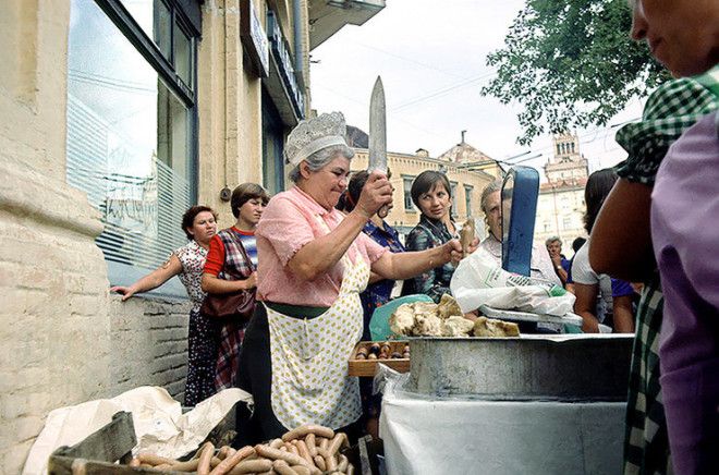 «Если куда-то ездили (командировка, по делу куда-то, к родственникам, на отдых), домой перли еду. Иногда просто аж надрывались, сумищами. Фрукты, колбасу и т. д., все, что можно было купить».