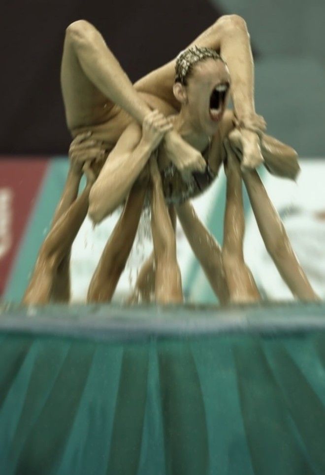 У девушки довольно необычная поза и очень говорящее выражение лица. Физические возможности и выносливость спортсменок не могут не восхищать, но пользователи интернета не упустят возможности улыбнуться.