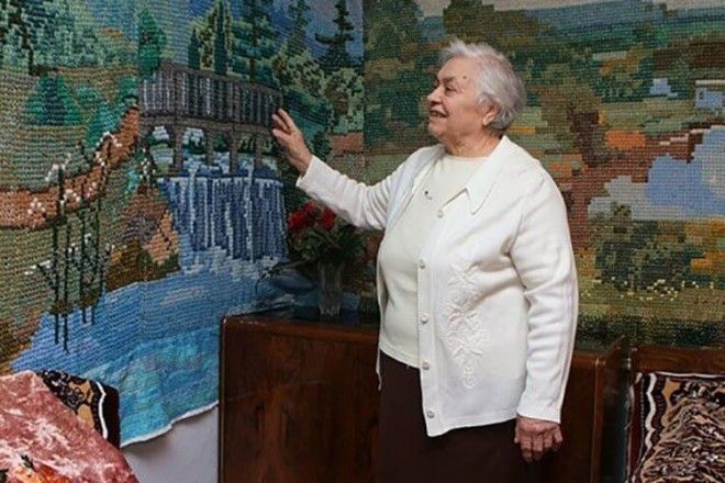 Екатерине Сергеевне немного за восемьдесят лет, но это не остановило ее на пути к цели. 25 лет назад женщина решила сделать подарок детям, вышить панно шириной 2,5 метров и длиной 10 метров.