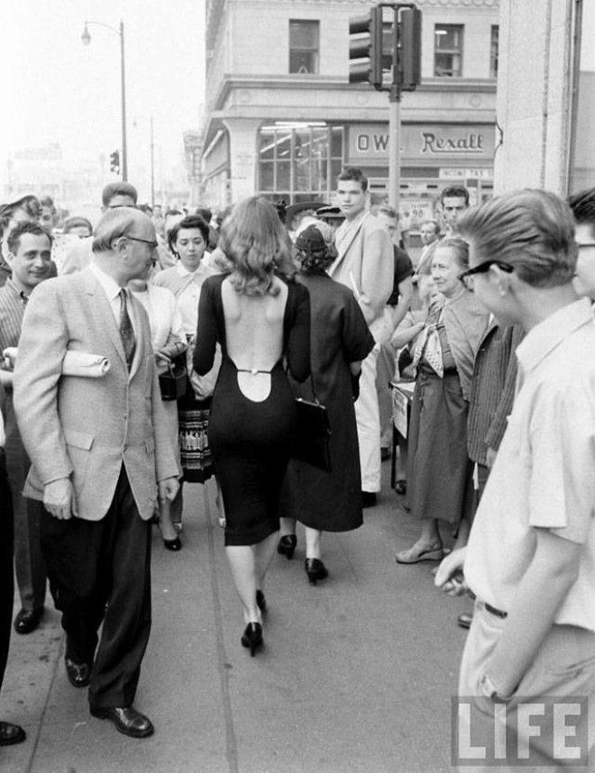Викки Дуган — модель, известная под прозвищем «Спинка». Также известна как прототип мультипликационного персонажа - роскошной девушки Джессики Рэббит, идет по улице, 1950-е