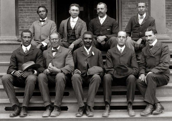 Джордж Вашингтон Карвер позирует со своими коллегами в Институте Tuskegee, 1902 год. Джордж Вашингтон Карвер разработал 300 производных продуктов из арахиса, среди которых сыр, молоко, кофе, мука, чернила, красители, пластмассы, мыло, линолеум, лекарственные препараты и косметика.