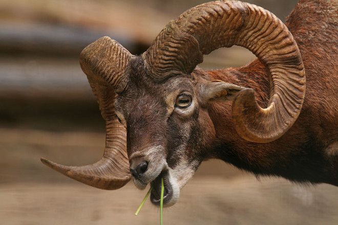 Муфлон является предком современных домашних овец. Имеет широкие рога, похожие на кривые петли, длиной до 65 см. Обитает животное на гористых ландшафтах.