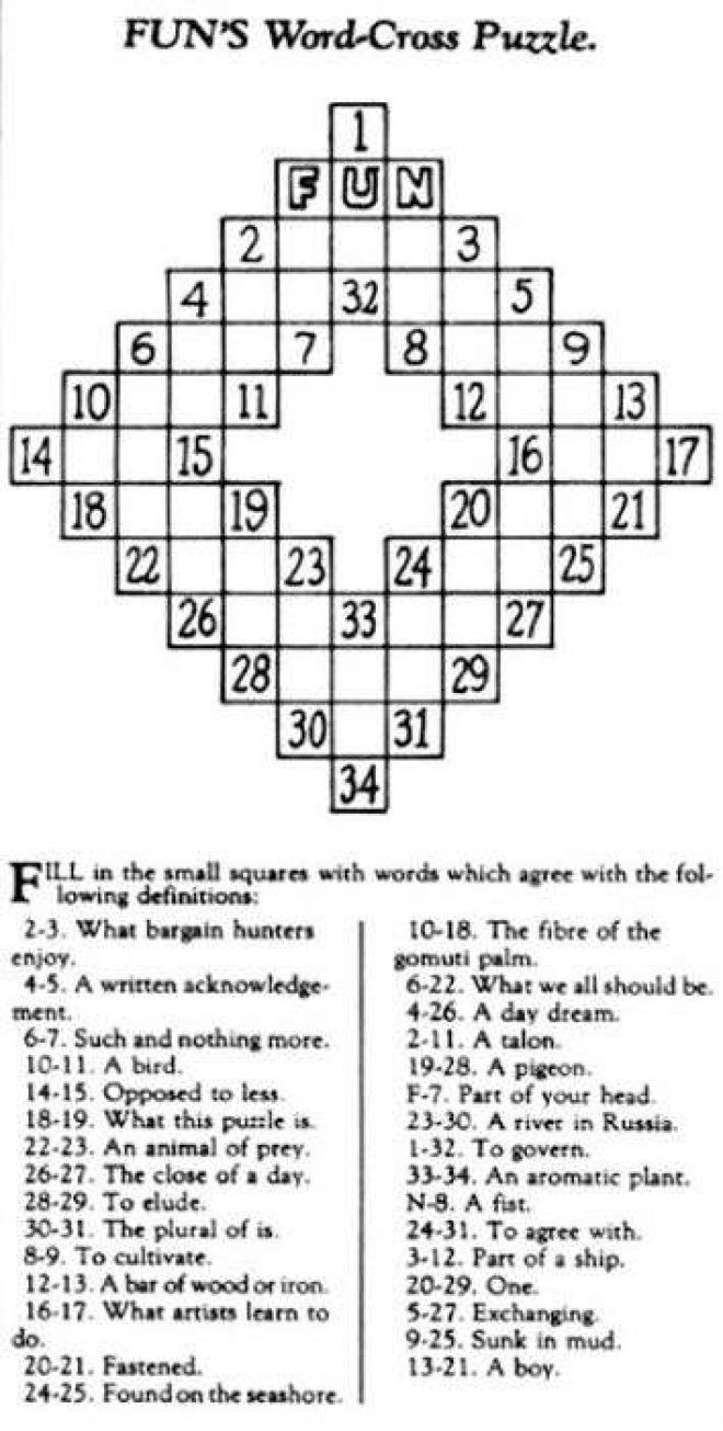 Артур Винн должен был придумывать развлечения для восьмистраничного раздела комиксов в издании New York World. Для рождественского номера он создал вещь, которую назвал «word-cross» (дословно можно перевести как «словесный перекресток»). Тогда Артур Винн не знал, что его изобретение станет повальным увлечением многих людей по всему миру.