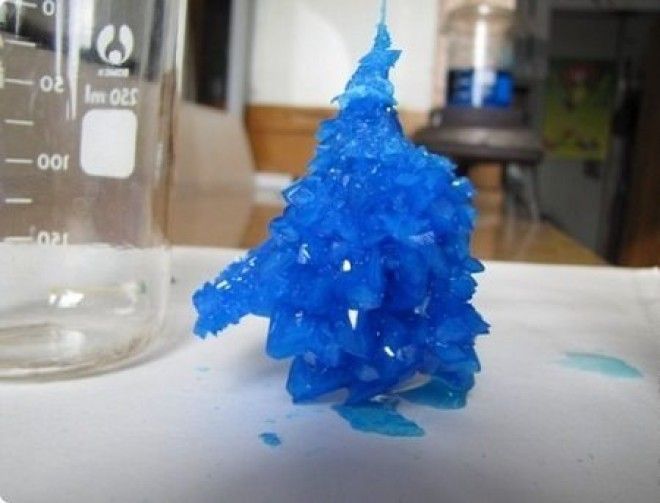 Ход действий. Добавь в воду большое количество соли до образования такой густой консистенции, что при добавлении новой порции, соль уже не будет растворяться. Сделай на проволоке маленькую петельку и опусти ее в этот раствор. Банку стоит поставить в теплое место, чтобы жидкость медленно остывала. Через несколько дней ты сможешь наблюдать за тем, как на проволоке начинают расти красивые цветные кристаллы.