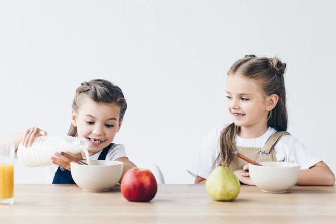 Ребенку понадобятся: 3 ст. л. хлопьев или гранолы, 1 ст. молока.