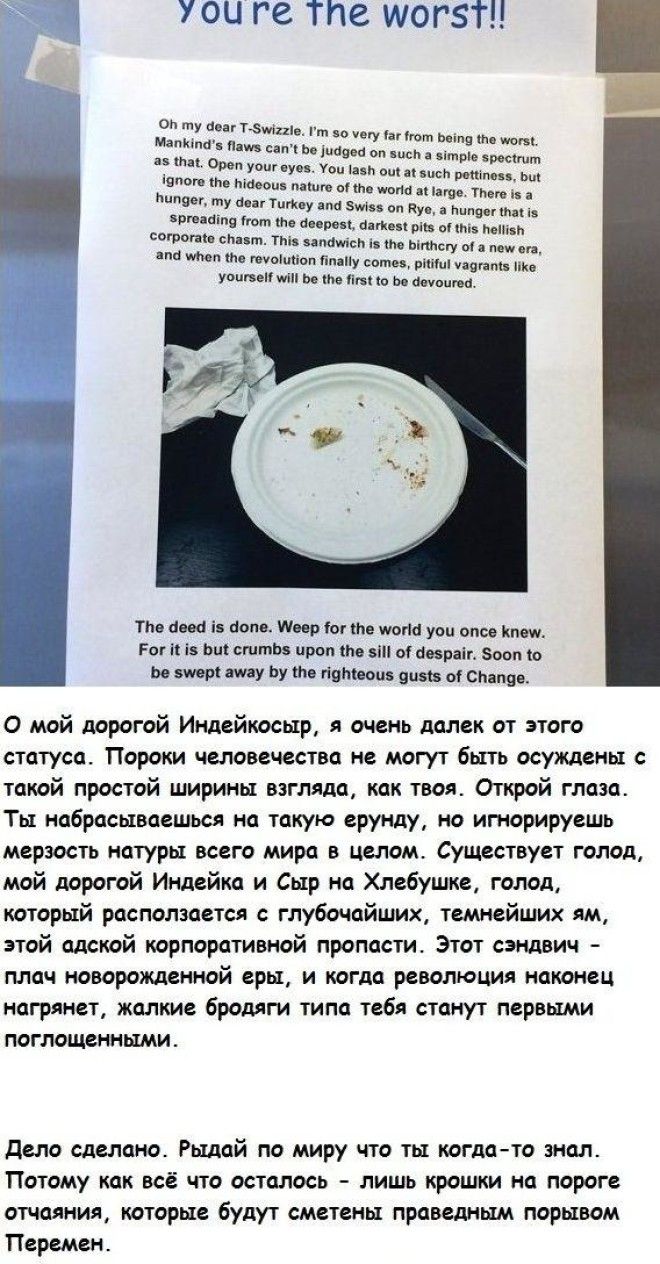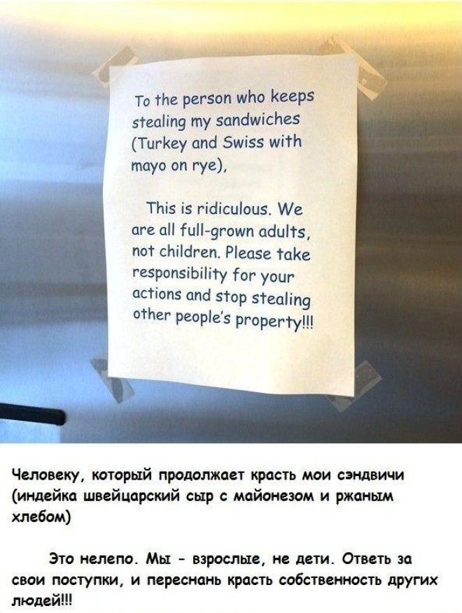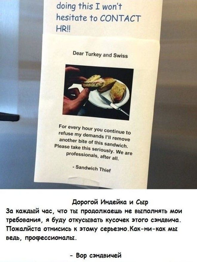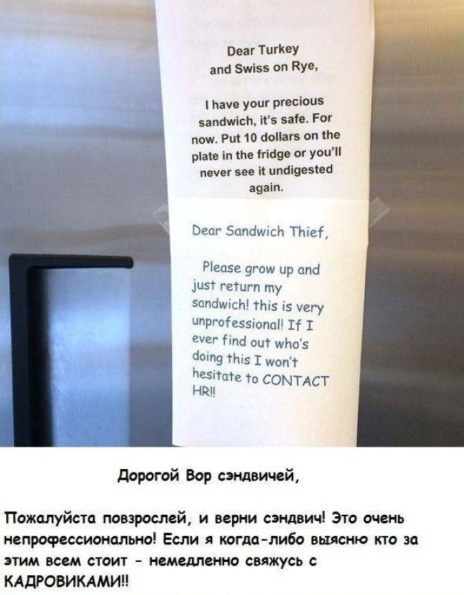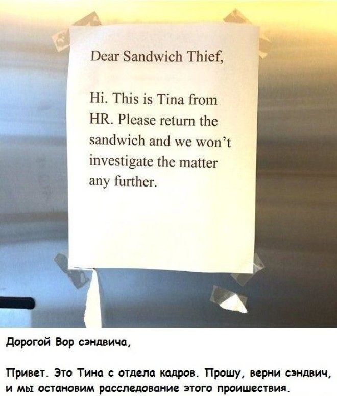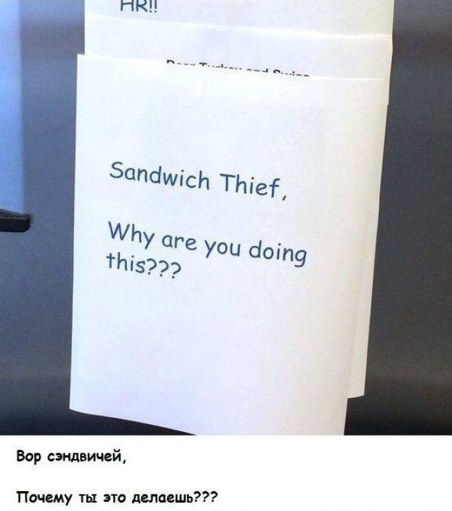 Эта переписка и в самом деле происходила в одном офисе между владельцем вкусного сэндвича и вором, который стащил этот сэндвич. И она повеселила не только сотрудников этого офиса, но и людей со всего мира, так как очень быстро переписка попала в Сеть.