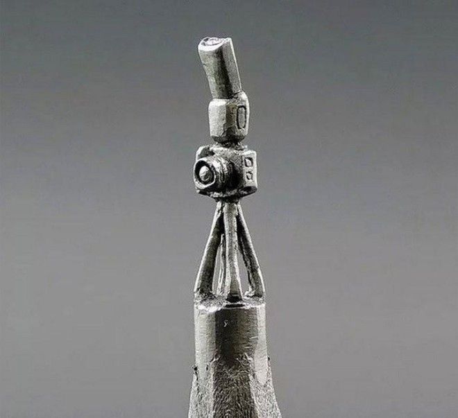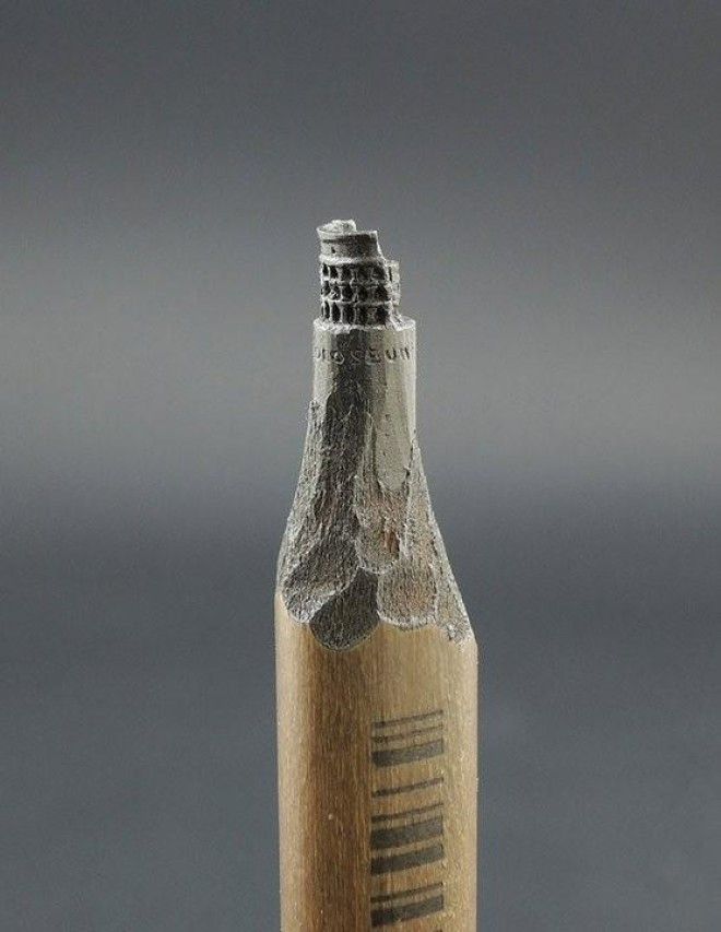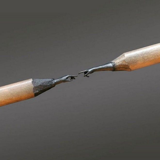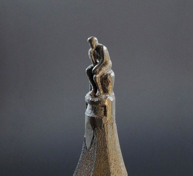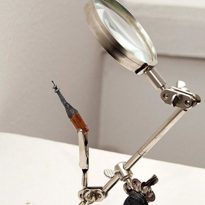 Он вырезает из грифелей карандашей ножом X-Acto и стамеской удивительные изящные фигуры. Результаты его трудов похожи на скульптуры из камня и обожженного дерева.