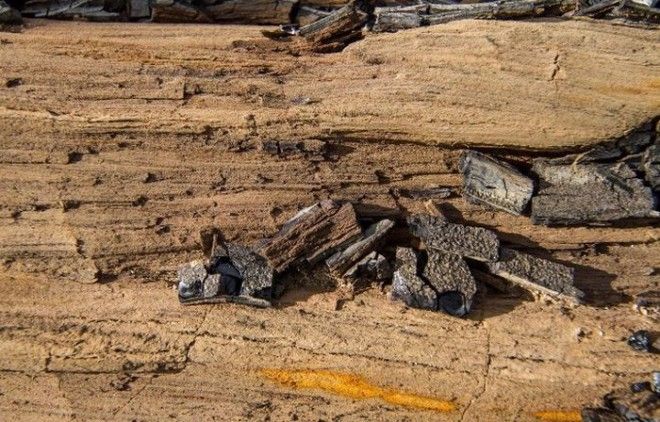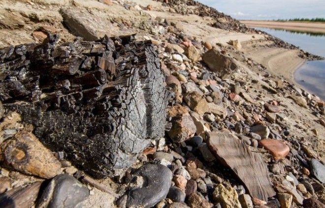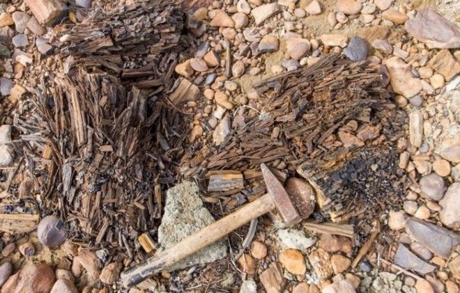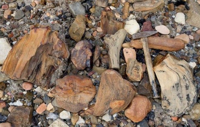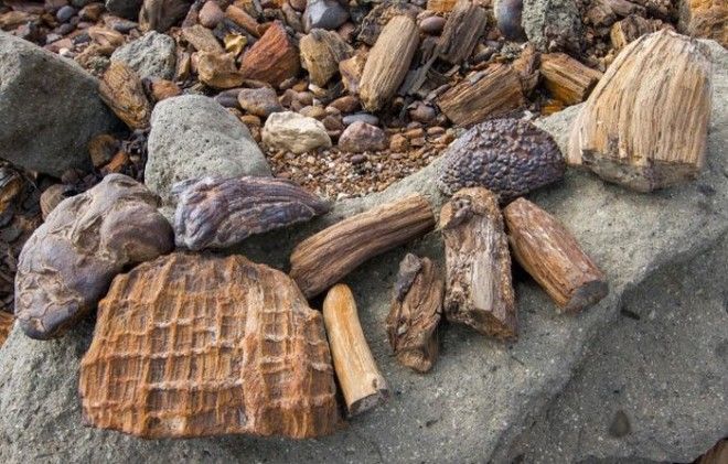 Кажется что старое, прогнившее дерево, занесенное песком и галькой. Однако возраст этих стволов 200 - 100 млн. лет.