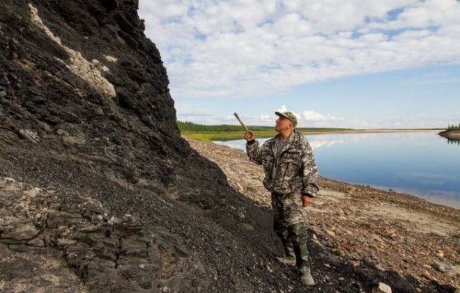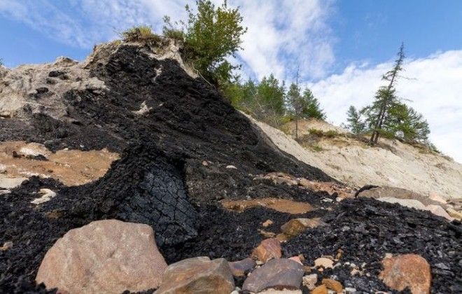 Выходы каменного угля на берегу Попигая.