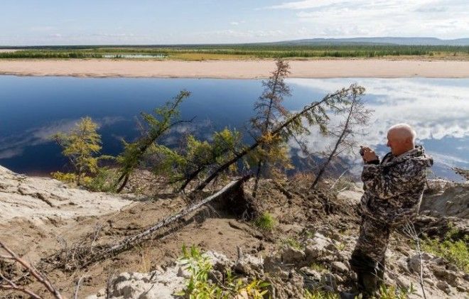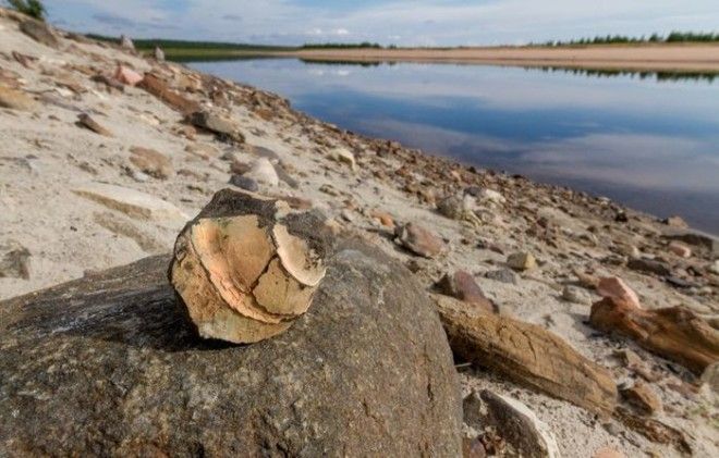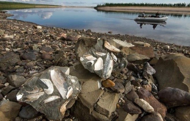 Покинув урочище "Пестрые скалы", мы спустились по Рассохе пару десятков километров и оказались на реке Попигай, которая собственно и дала название нашей астроблеме. Чуть выше по течению от устья Рассохи находится обозначенный на картах, но давно заброшенный поселок Попигай (или Старый Попигай - по разным картам). Речь о нем пойдет в следующем посте. Не задерживаясь в поселке, мы поднялись вверх по течению Попигая до следующей нашей цели - выходов мезозойских кремнеземов со значительными остатками окаменевшей древней флоры.