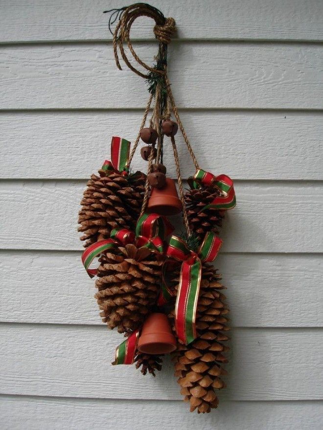 В случае, если вы хотите шишки подвесить, можно пользоваться всеми декораторскими способами шишек лежачих-стоячих.