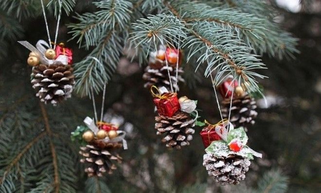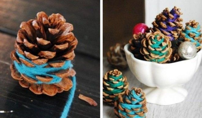 Тут вариантов масса: композиции в вазочках, композиции на столах, а также елочки из шишек.