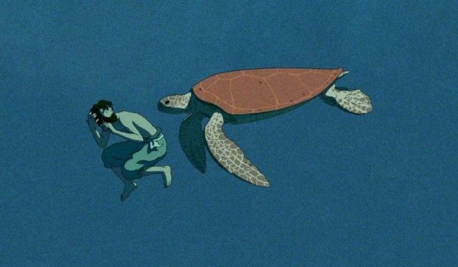После кораблекрушения мужчина просыпается на безлюдном острове. Поняв, что помощи ждать неоткуда, он пытается построить плот, но огромная красная черепаха всеми силами мешает ему покинуть остров.