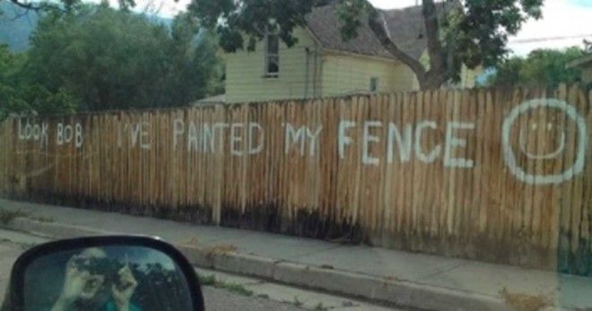 Послание трудолюбивого соседа: "Глянь-ка, Боб, а я покрасил забор!"