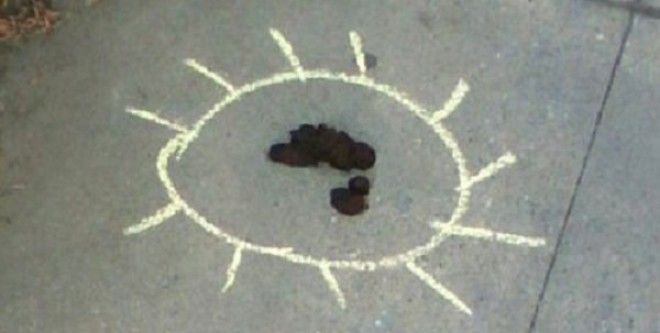 Кто-то из соседей явно видит мир менее солнечным, чем ребенок, нарисовавший солнышко. По словам родителей ребенка, куча появилась уже после появления рисунка.