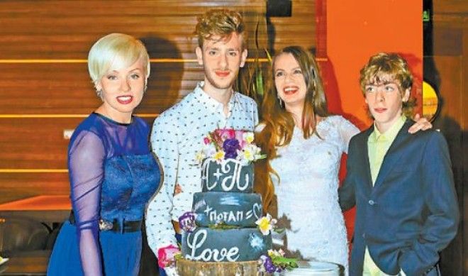 Жанна Эппле с сыновьями и невесткой на свадьбе старшего сына