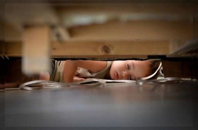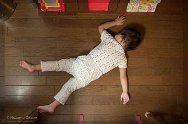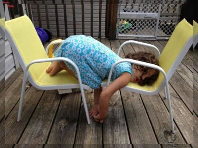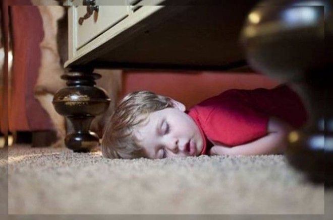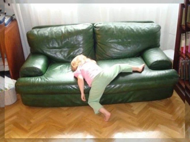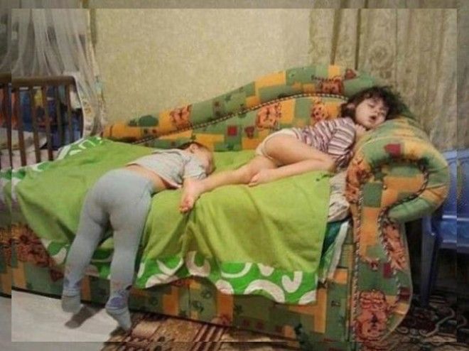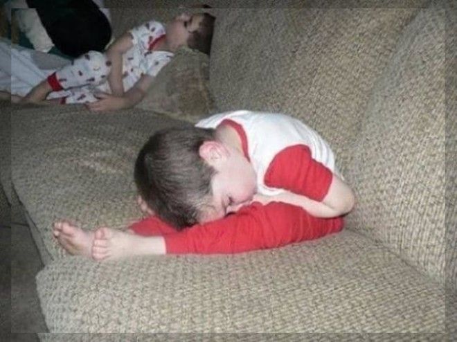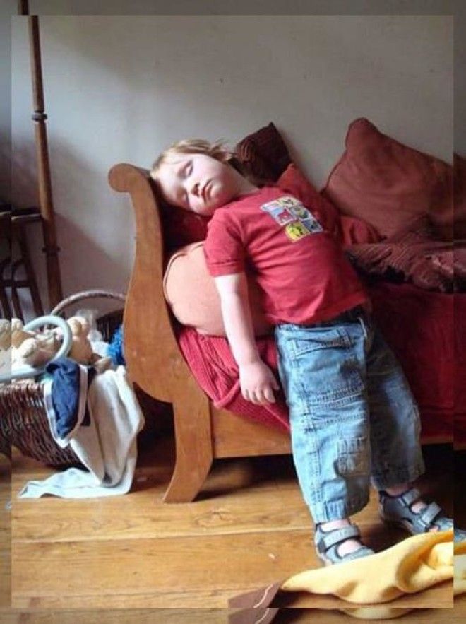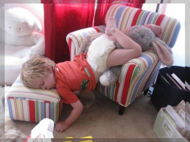 Маленькие дети являются настолько подвижными и энергичными, что очень быстро устают. Когда усталость застает их врасплох, им необходимо восполнить силы и немного поспать, а для этого, как известно, подходят практически любые места и позы.