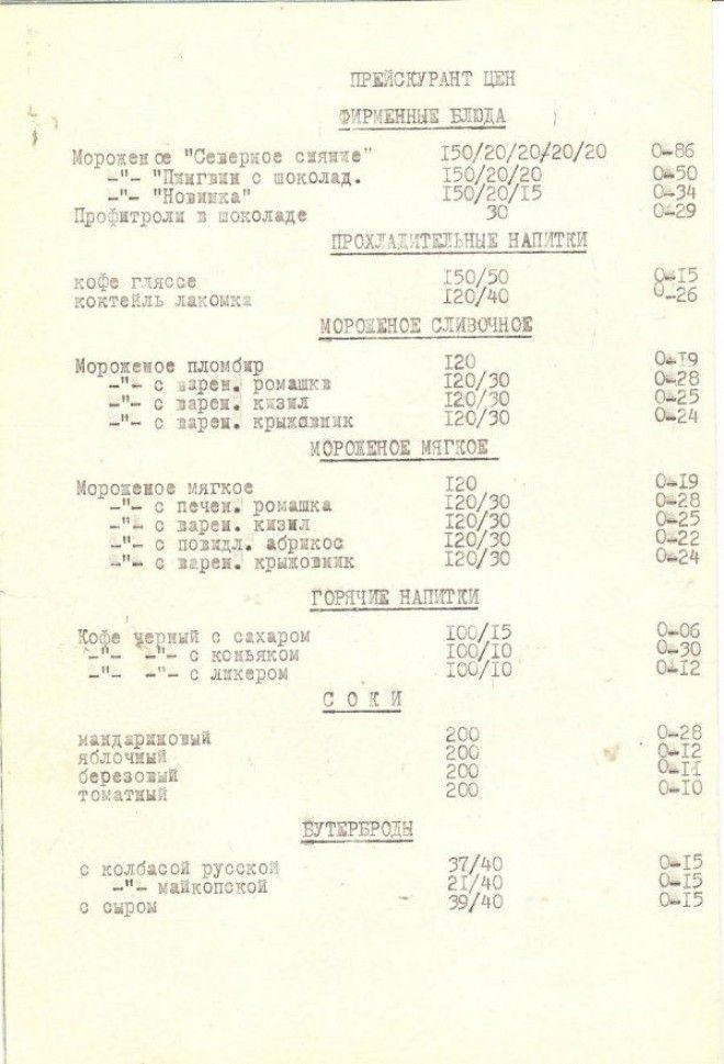 Представляем вашему вниманию несколько меню популярных в то время заведений.
