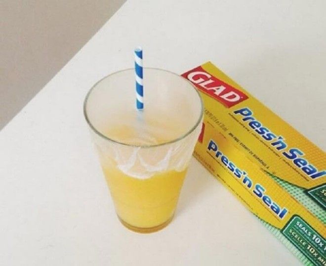 12. Накрыв любой стакан с жидкостью пленкой и проткнув ее трубочкой, ты сделаешь надежную непроливайку!