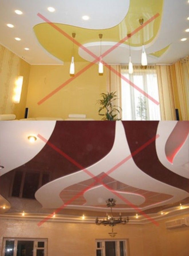 На первом месте по силе уе*ищности и популярности идет гипсокартонная волна на потолке. Каждый второй интерьер, который делается без дизайнера или с плохим дизайнером, имеет такую волну.