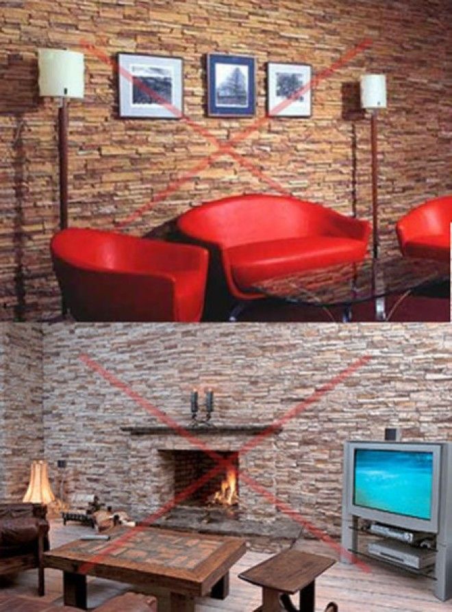 Нужно сразу отметить, что тут бывают исключения. В руках умелого дизайнера очень-очень редко все же получается использовать этот материал красиво. Например, если потолок белый. В большинстве же случаев это выглядит страшно и дешево.