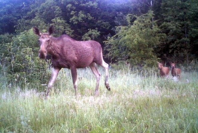 Лосиха с двумя детенышами.