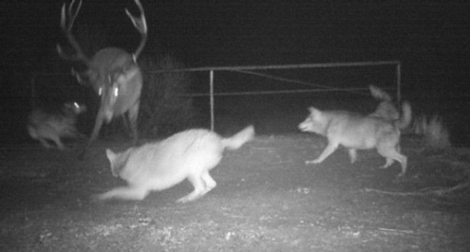 Волки загнали оленя-подранка.
