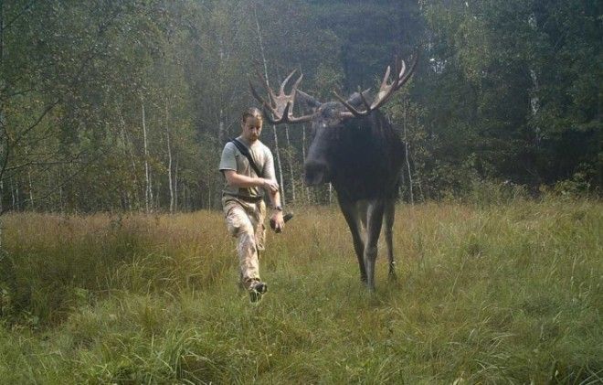 А вот как выглядят животные в сравнении с людьми (фотомонтаж из двух кадров одной и той же камеры).