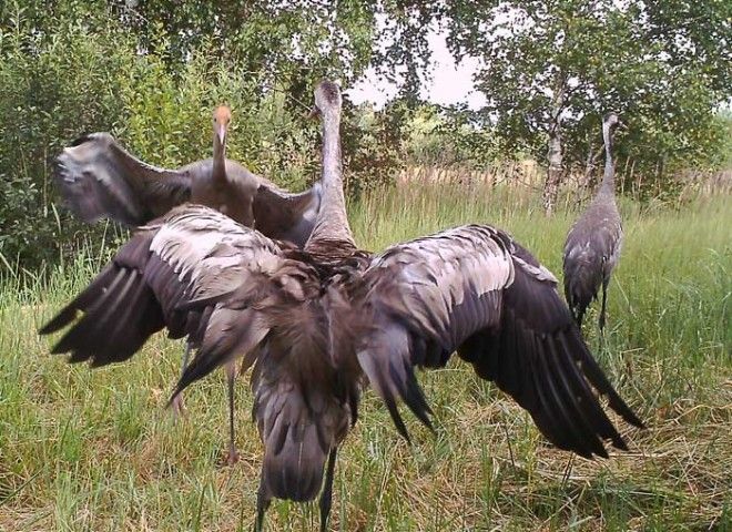 Танцуют все! Журавли устроили настоящее шоу перед камерой.