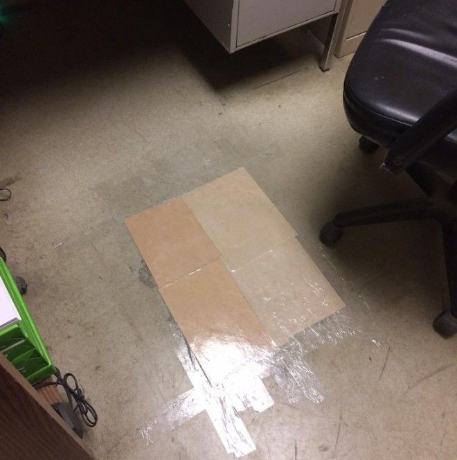 «Коллега „починил“ линолеум в офисе при помощи картона и скотча»