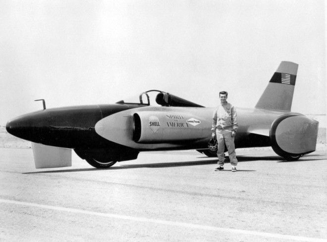 49. С сорок девятым рекордом скорости для автомобиля произошёл казус. 5 сентября 1963 года, спустя почти 16 лет после Кобба, на соляных озёрах Бонневилля пилот Крейг Бридлав разогнался на своём автомобиле Spirit of America до скорости 657,114 км/ч. Это был первый в истории рекорд, установленный на автомобиле, движителем которого были не колёса, а реактивная тяга. Это противоречило правилам, установленным на тот момент автомобильной федерацией FIA; более того, автомобиль был трёхколёсным, в то время как в правилах чётко было прописано: четырёхколёсные экипажи. Рекорд не признали.
