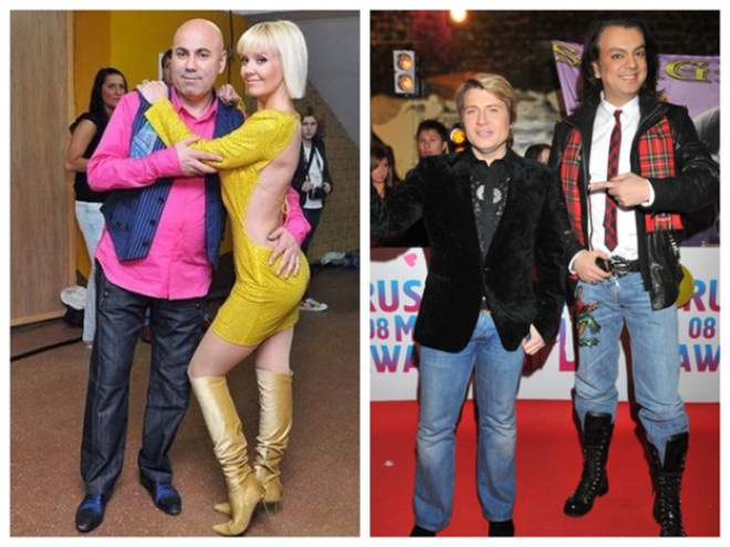 Пример нагляднее некуда: Иосиф Пригожин в розовой рубашке и синих туфлях. И еще один: Николай Басков в бархатном пиджаке, классических туфлях и голубых джинсах и Филипп Киркоров (сами видите, в чем).
