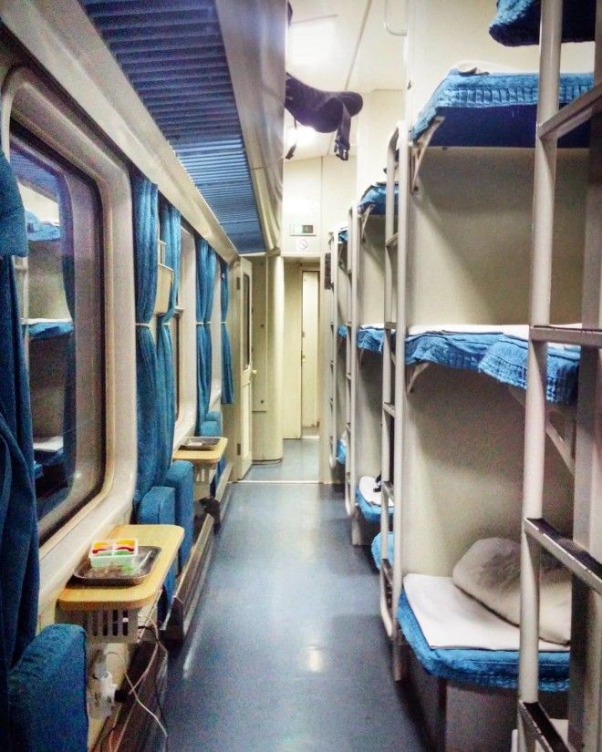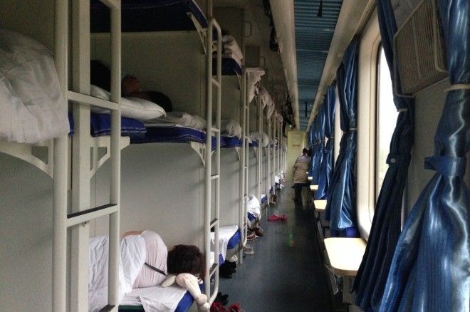 Здесь поезда тоже не страдают от нехватки пассажиров, и, как правило, там нет боковых мест. Кроме того, вместо спальных мест в два яруса предусмотрены трехъярусные полки.