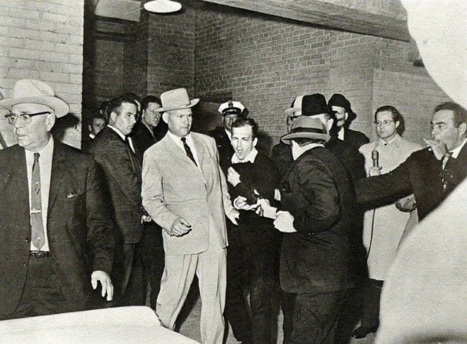 Момент выстрела Джека Руби в Ли Харви Освальда, который, предположительно, стрелял в Джона Кеннеди.