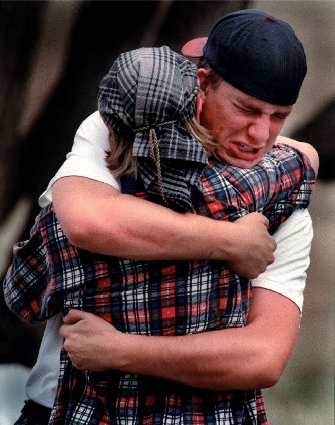 Снимок выживших во время бойни в Высшей школе Колумбайн.