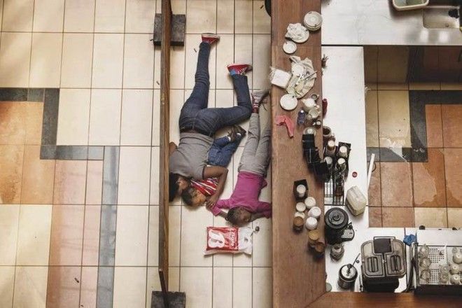 Американский лейтенант вернулся домой после 16 месяцев остуствия. Жюри оценило фото за то, что эмоции прекрасно видны, несмотря на отстуствие лиц на фото.