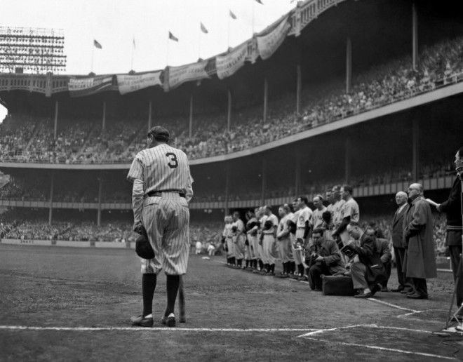 Прощание с легендарным бейболистом «Нью-Йорк Янкиз» Бейбом Рутом. Спустя пару месяцев он скончался от рака горла, а третий номер остался посмертно закреплен за ним.