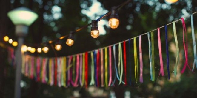 Продумайте, где будут сцена, танцпол и места для зрителей. Сцену можно украсить воздушными шариками и гирляндами из бумаги. На улице можно повесить гамаки и самодельные качели между деревьями.