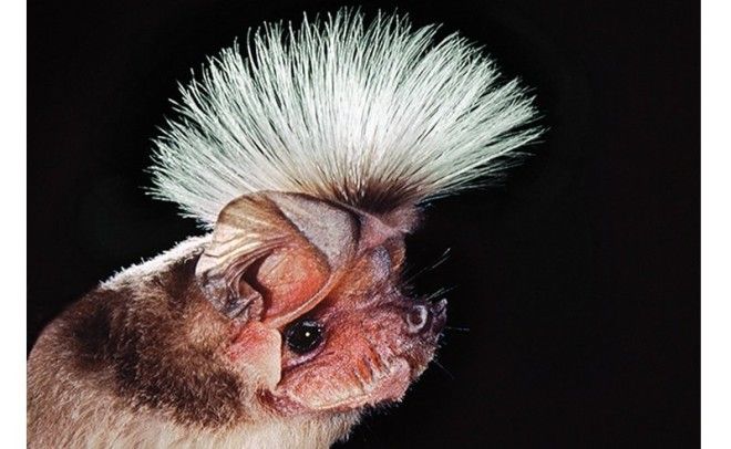 Длиннохохлый складчатогуб из семейства бульдоговых летучих мышей красуется необычным хохолком у себя на голове, служащим, судя по всему, для привлечения самок. Этой же цели служит специфический запах, выделяемый самцами.