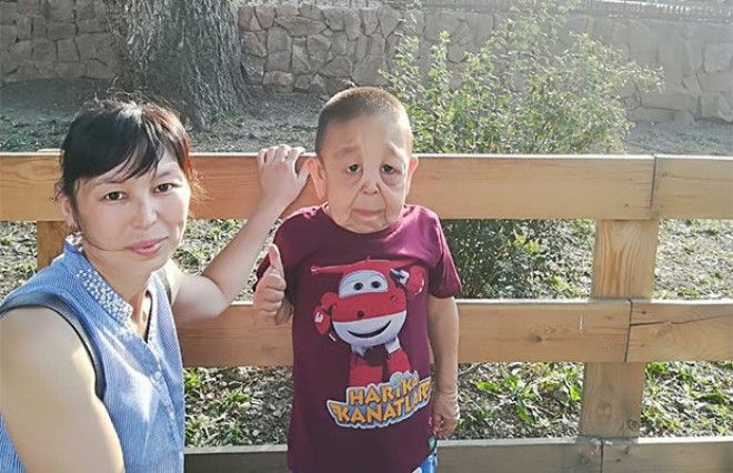 Кожа ребёнка легко растягивается и свисает под тяжестью собственной массы, образуя складки и морщины. В свои шесть лет мальчик выглядит как старик.