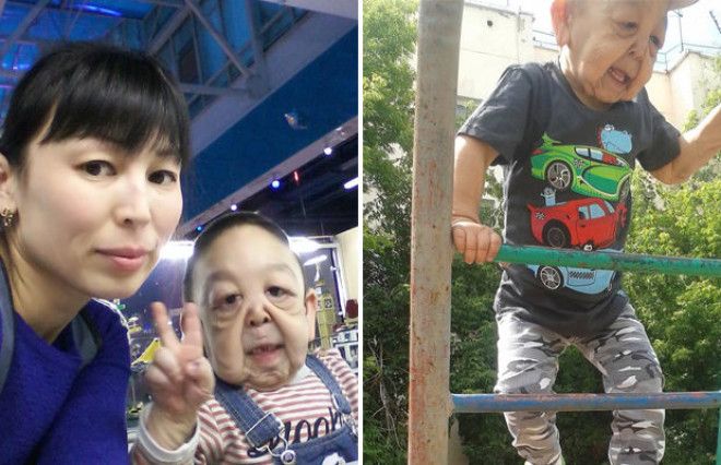 По словам мамы мальчика, ребенок родился нормальным, здоровым малышом. Однако через два месяца мать стала замечать, что у ребенка вокруг лица начинает обвисать кожа. Далее «старение» продолжилось по всему телу и организму.