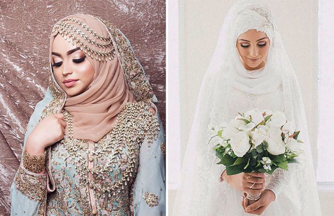 В западных странах невесты надевают белое платье, в Индии — выбирают розовые или красные платья. Мусульманские невесты носят красивые хиджабы, которые в зависимости от страны и культуры могут быть очень разными.