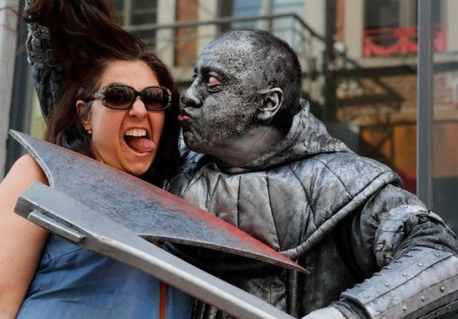 Живые статуи — распространенное зрелище во многих городах...