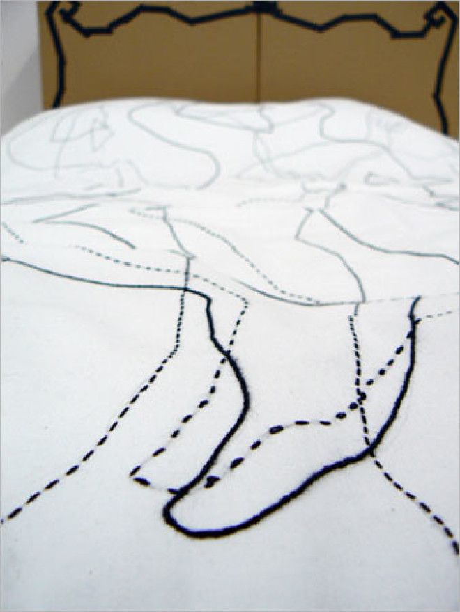 А у вас бывает такое, что крутишься в постели перед сном и не можешь уснуть? А может вы просыпались совершенно не в том конце кровати, где засыпали? Сон многих людей не отличается спокойствием, и компания AZE design, 2007 выпустила простыни с необычным рисунком. Его название – «Рисунок вашего сна». На этих простынях продемонстрированы положения человеческого тела, которое оно принимает во сне.