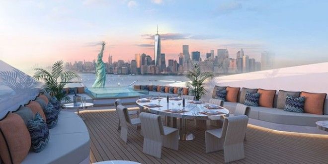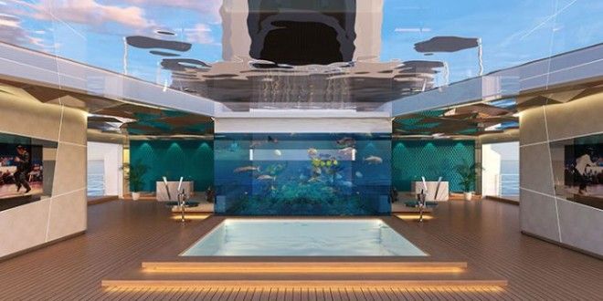 По словам Терацци, при таком подходе каюта становится идеальным местом для наблюдения за закатом. Здесь можно уединиться с любимым человеком или весело провести время в компании друзей. Кроме того, бассейн сливается с небом и создает ощущение бесконечности.