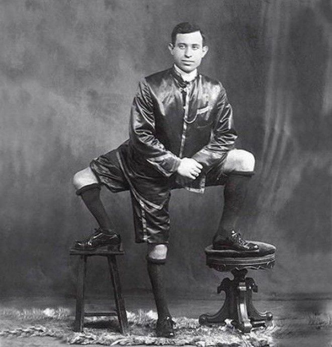 А вот Фрэнк Лентини действительно был трёхногим. При этом у него было четыре ступни, шестнадцать пальцев и целых два набора половых органов.