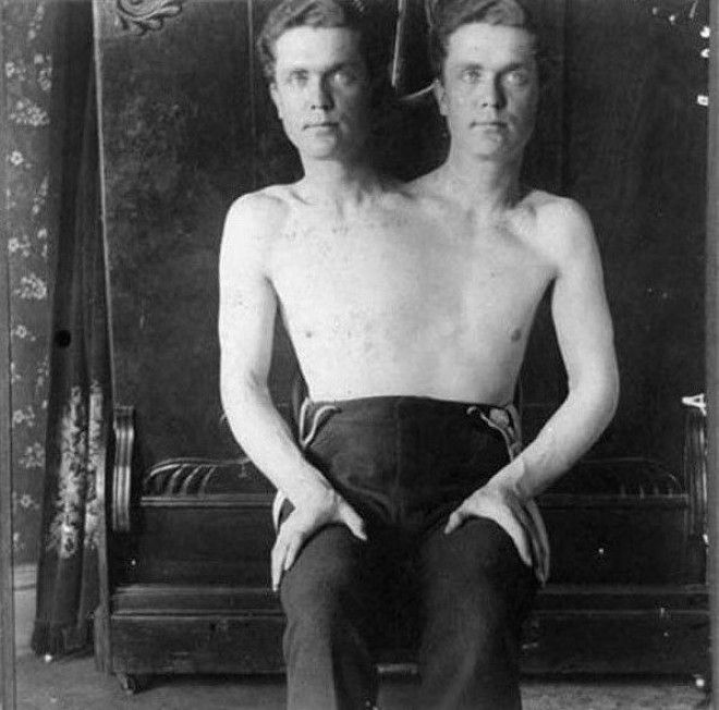 Этих сиамских близнецов представляли публике как «двухголового человека».