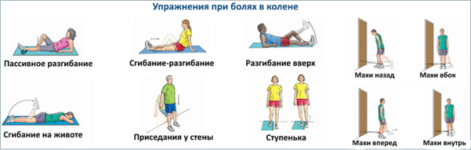 В комплекс наиболее часто назначаемых упражнений при боли в колене входят следующие: